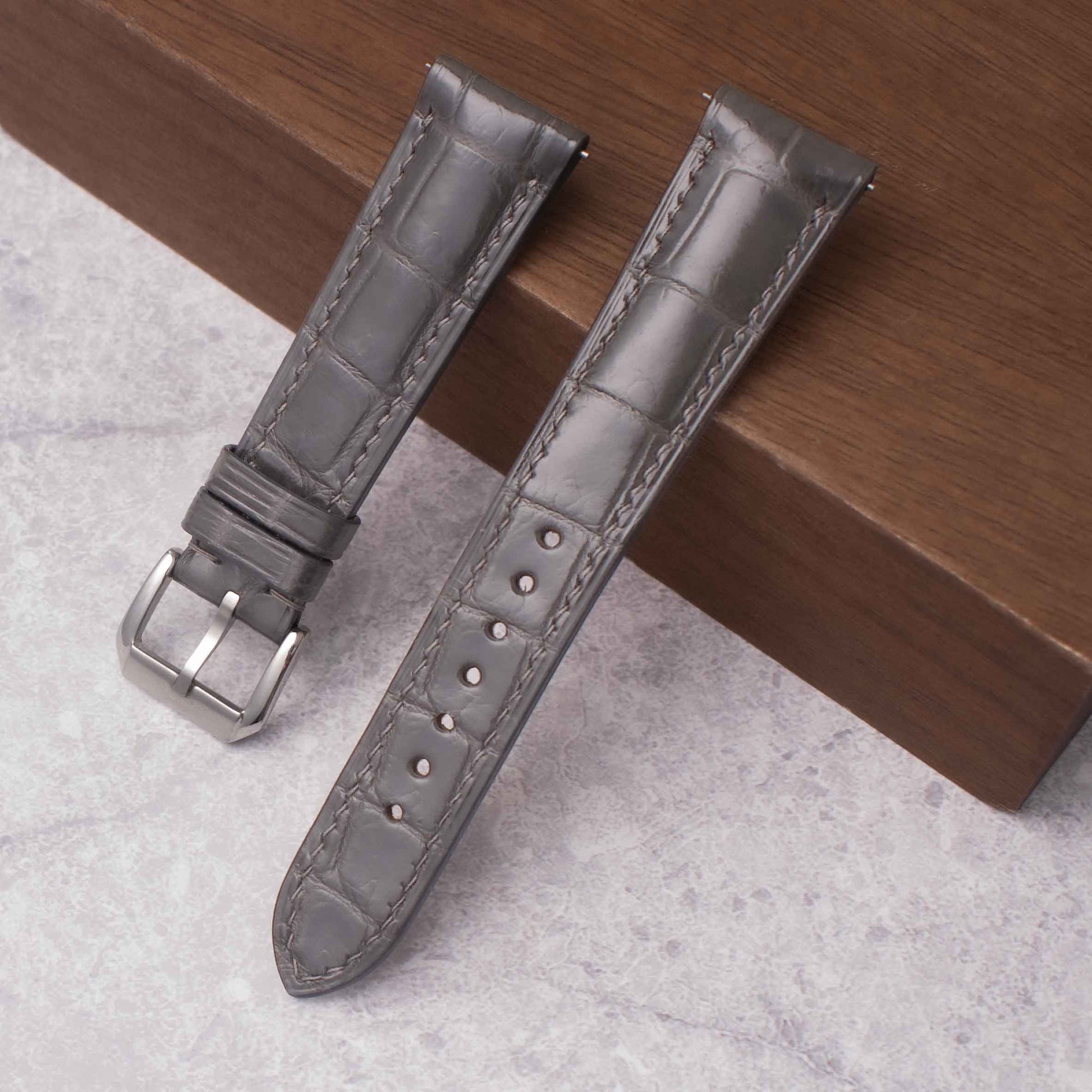 For the formal look and classy feel, Alligator straps are the best. Our handcrafted Alligator straps guarantee an exciting feeling whenever you or your watch suit up. Now available in multiple fabulous colors.