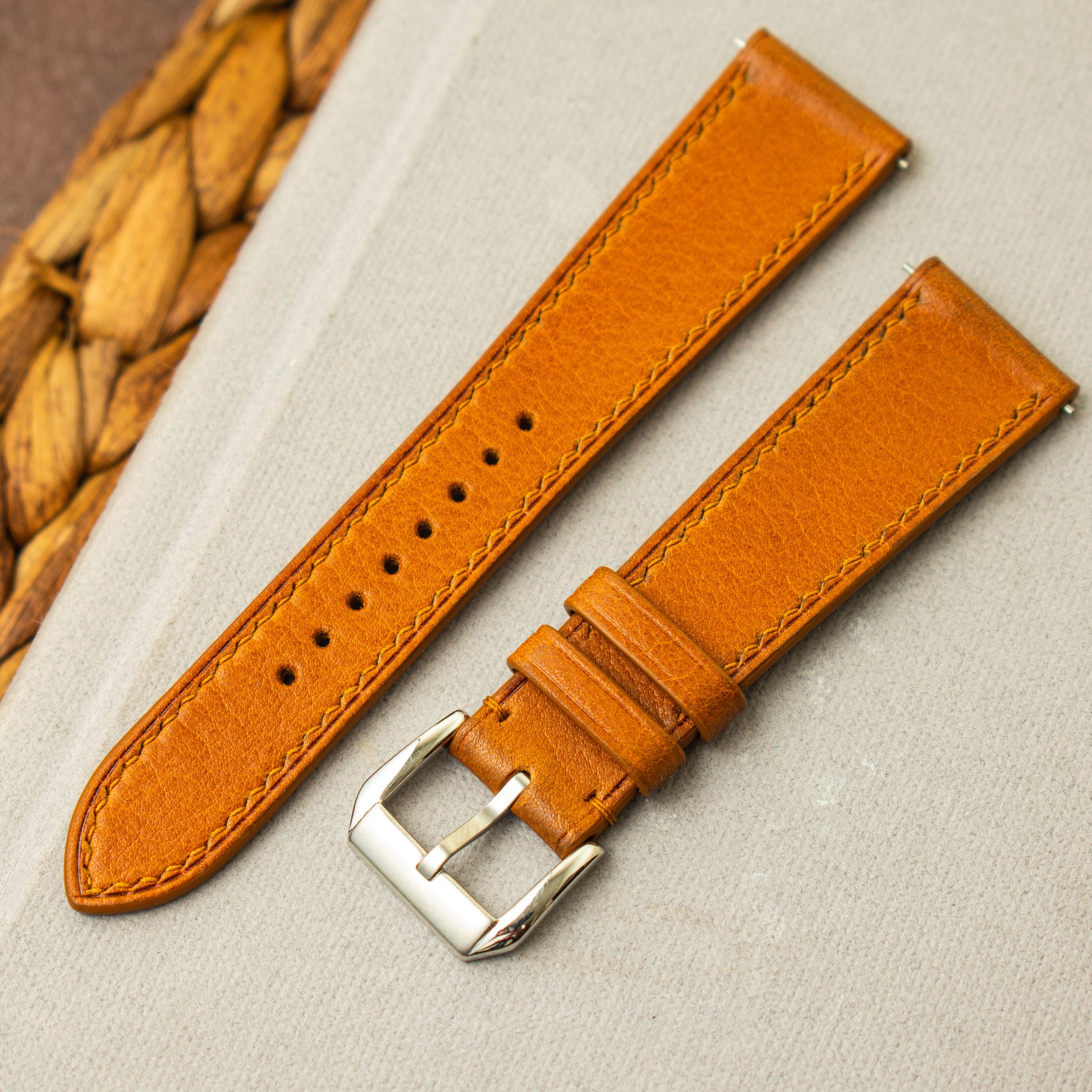 Minerva Box leather is a vegetable-tanned leather, which means it create a beautiful patina with time. If you’re looking for a strap that is not great looking but also a durable with a future once it gets patina, then you are in the right place.